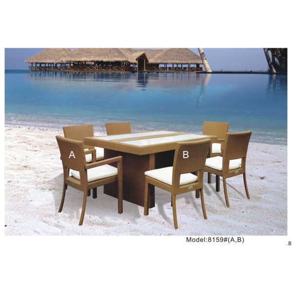 | Product Name:7-piece beige PE wicker rattan coffee dining set for 6 people with 4 armless chairs-8159